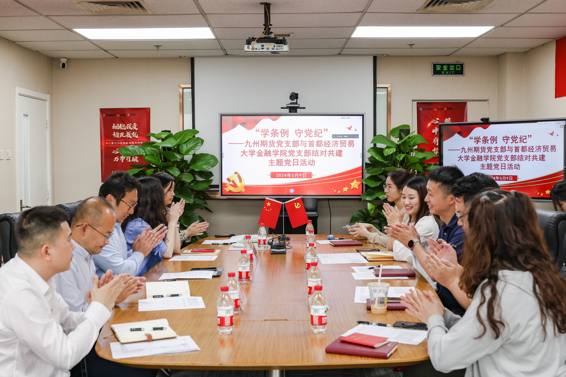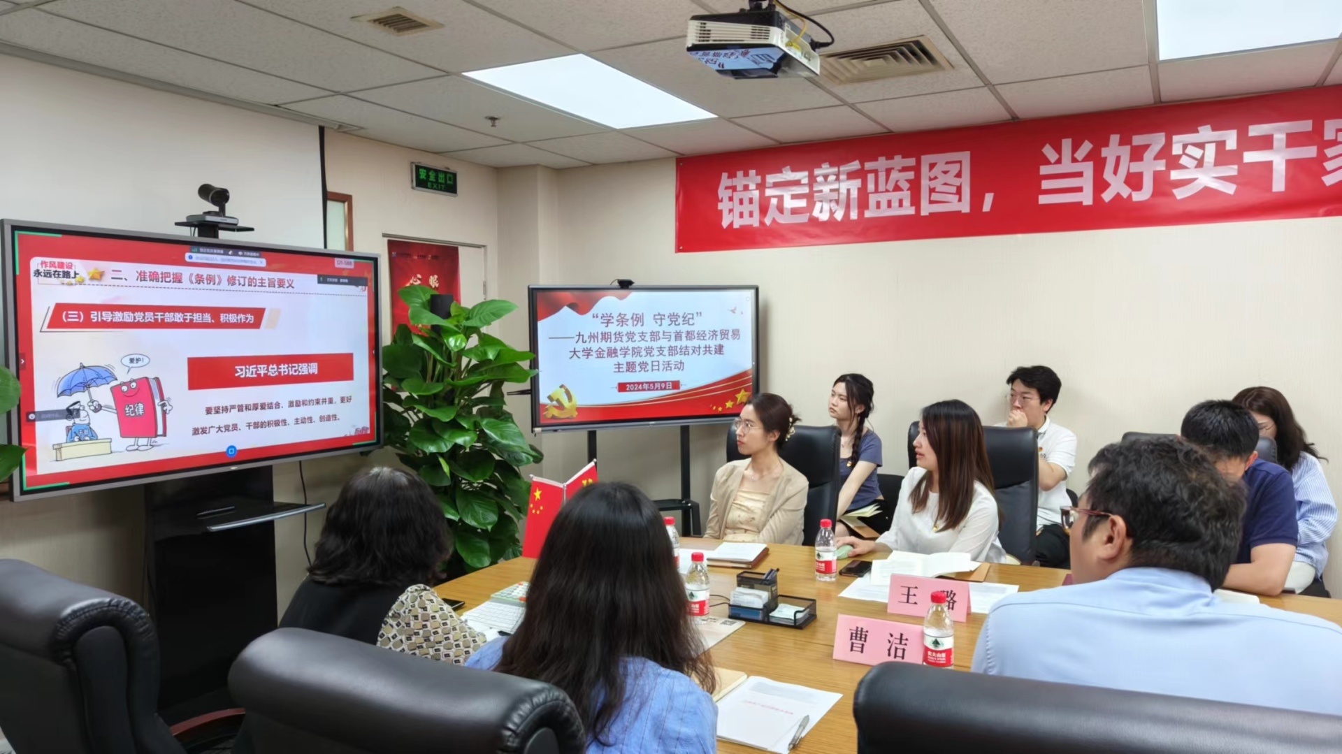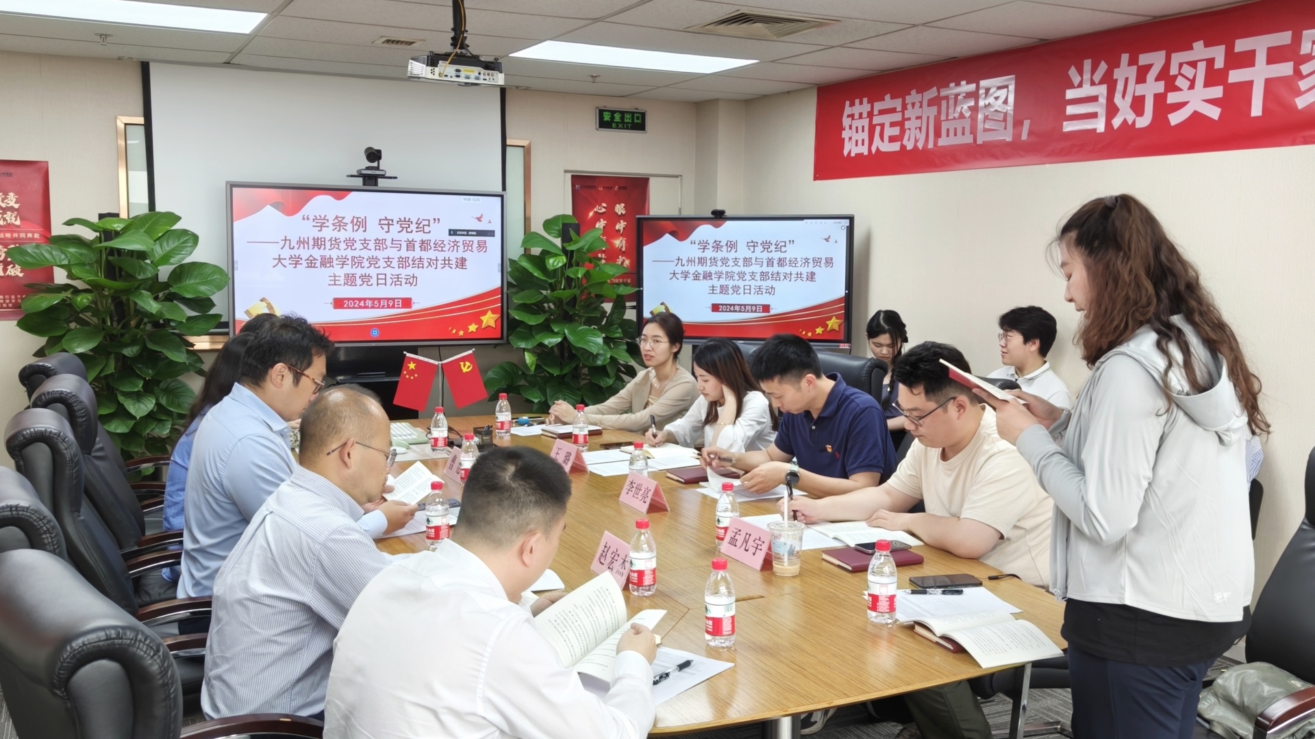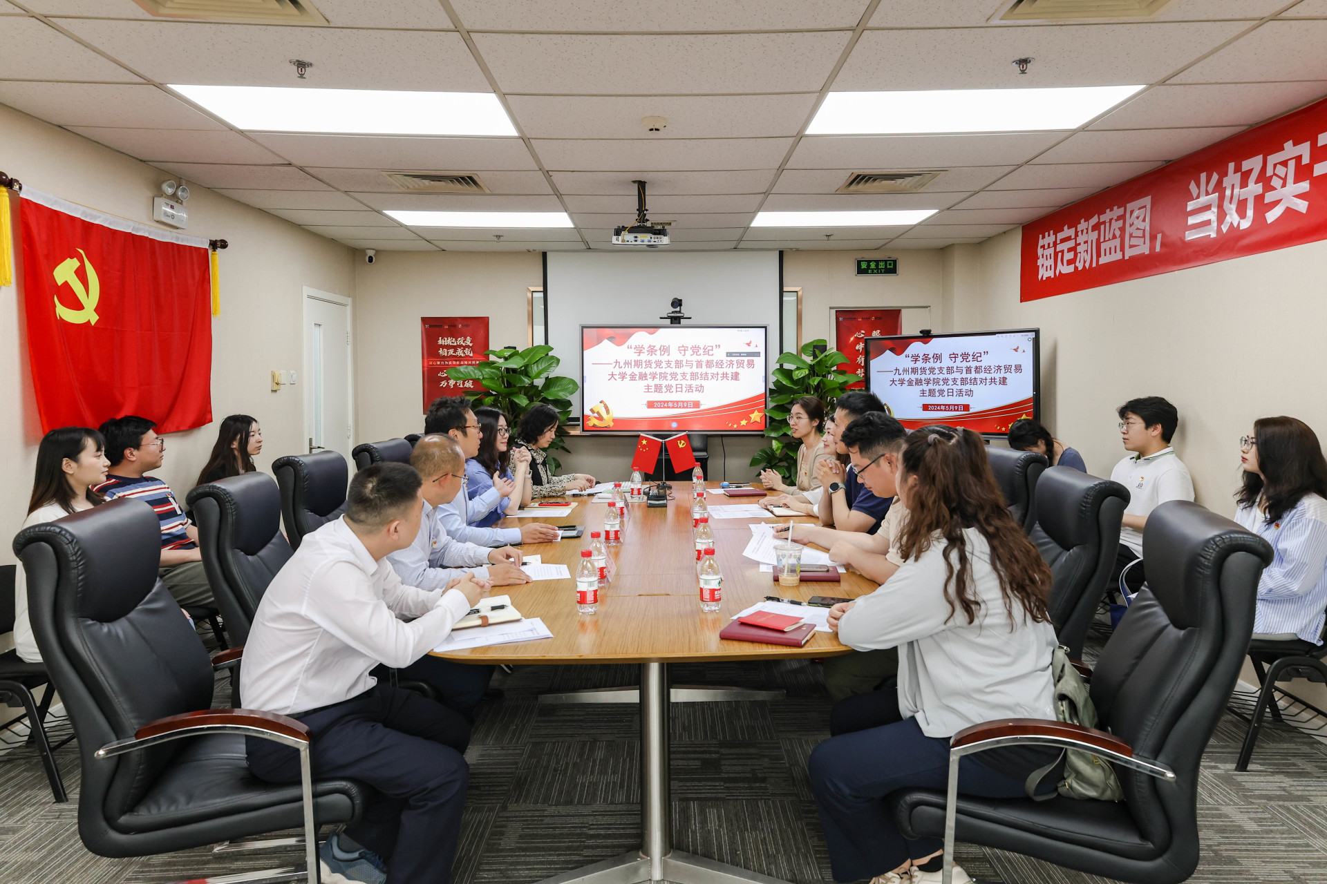 2024年5月9日,九州期貨黨支部與首都經(jīng)濟(jì)貿(mào)易大學(xué)金融學(xué)院黨支部在公司會(huì)議室以“現(xiàn)場(chǎng)+線(xiàn)上”的形式聯(lián)合開(kāi)展了“學(xué)條例 守黨紀(jì)”結(jié)對(duì)共建主題黨日活動(dòng)。堅(jiān)決認(rèn)真學(xué)習(xí)貫徹新修訂的《中國(guó)共產(chǎn)黨紀(jì)律處分條例》作為重要政治任務(wù),加強(qiáng)黨的紀(jì)律建設(shè)、推動(dòng)全面從嚴(yán)治黨向縱深發(fā)展,進(jìn)一步使產(chǎn)教融合、企校合作,聯(lián)合共建走實(shí)走深。