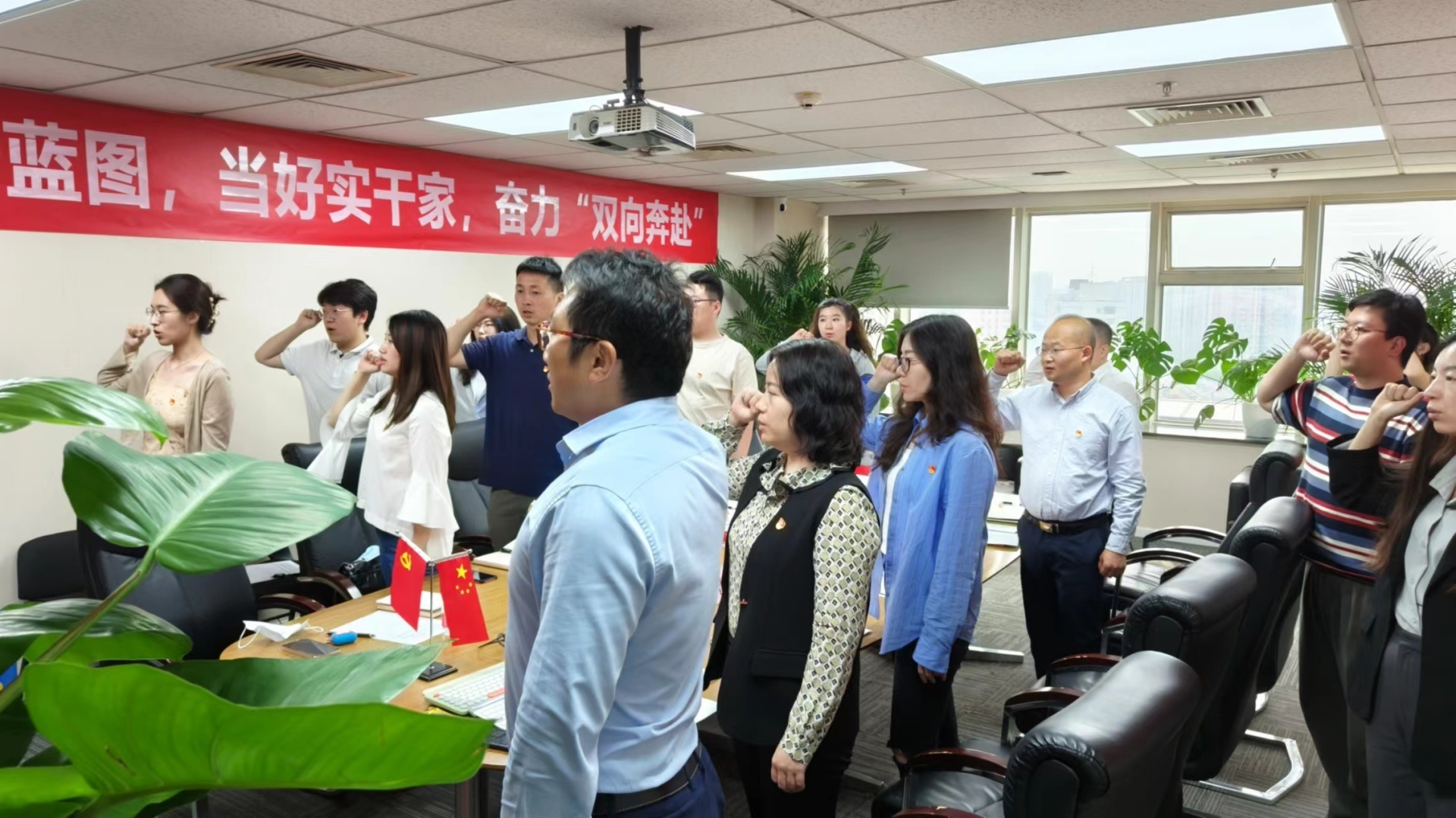 在副書(shū)記魏斐同志的領(lǐng)誓下,大家舉起右拳,重溫入黨誓詞。全體黨員不忘初心,繼續(xù)前行,為黨和國(guó)家的事業(yè)貢獻(xiàn)自己的力量!